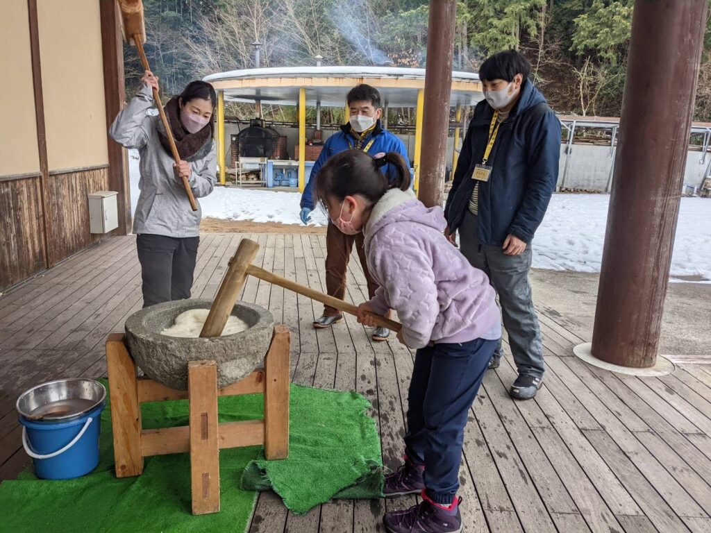 年明けは、みんなで力を合わせて、おもちつき!