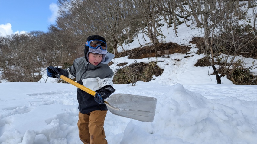 そして、ソリやスコップなどの道具を使って遊ぶ。